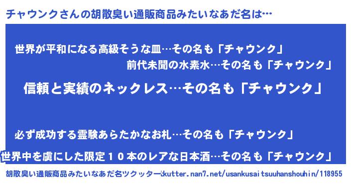 | 男性向けラノベタイトル風あだ名 | 『チャウンクスレイヤー』 |