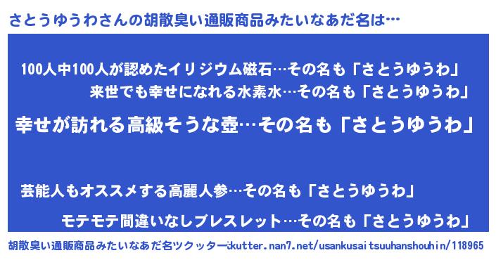 | 伝説のあだ名 | 『秘められし忍者さとうゆうわ』 |