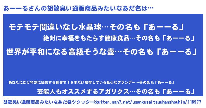 | 意味不明あだ名 | 『あーーるフォーエバー』『自称あーーる』 |