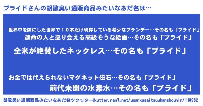 | 意味不明あだ名 | 『とにかく怪しいブライド』 |