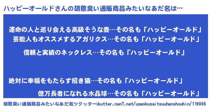 | 意味不明あだ名 | 『とにかく怪しいハッピーオールド』 |