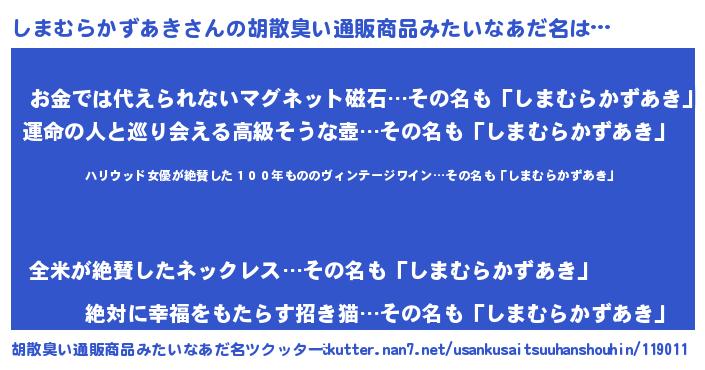 | ヘコむあだ名 | 『しまむらかずあき(小並感)』『豆乳』 |