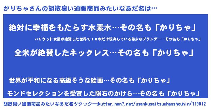 | ヘコむあだ名 | 『かりっ子』『かりちゃ(遠い目)』 |