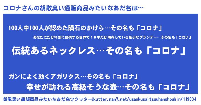 | 女子向けラノベタイトル風あだ名 | 『コロナの卵を拾いまして』 |