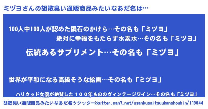 | ヘコむあだ名 | 『ミヅを』『ミヅヨ(笑)』『レバニラ』 |