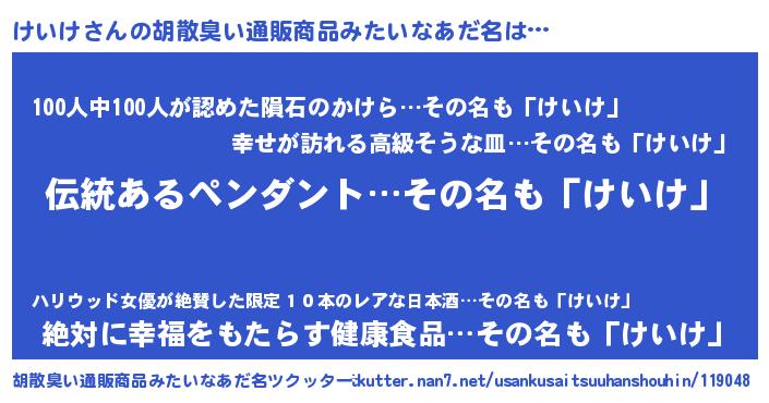 意味不明あだ名 | 『とにかく怪しいけいけ』 |