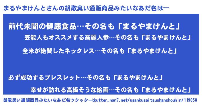 | 意味不明あだ名 | 『とにかく怪しいまるやまけんと』 |