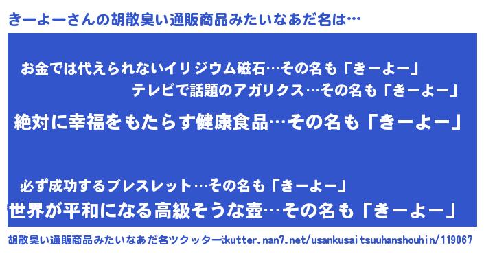 | ヒーロー風カッコイイあだ名 | 『ネオキーヨー』『慈愛の使者きーよー』 |