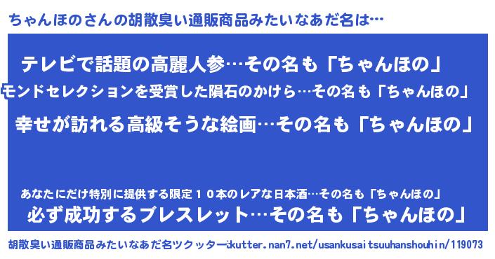 | 欧米人風あだ名 | 『ちゃんほのクリステル』 |