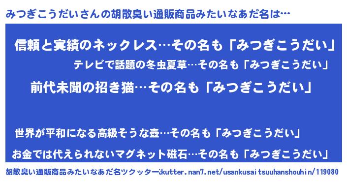 | 意味不明あだ名 | 『永久保存みつぎこうだい』 |
