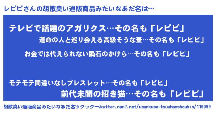 | 男性向けラノベタイトル風あだ名 | 『ノーゲーム・ノーレピピ』 |