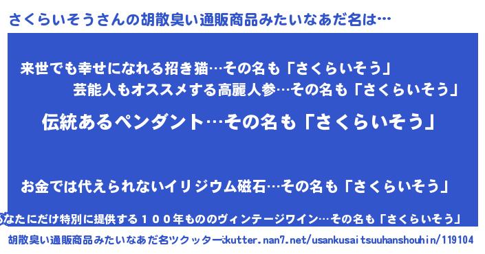 | 意味不明あだ名 | 『とにかく怪しいさくらいそう』 |