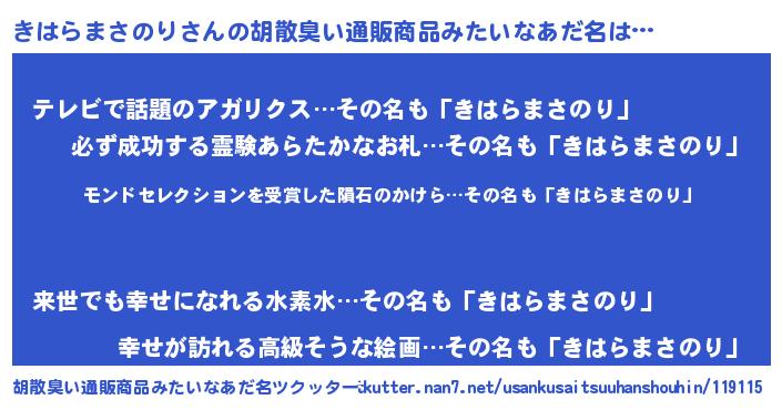 | 男性向けラノベタイトル風あだ名 | 『ノーゲーム・ノーキハラマサノリ』 |