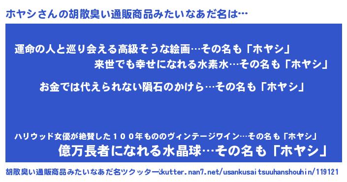| 女子向けラノベタイトル風あだ名 | 『ホヤシ恋絵巻』『ホヤシの婚約者』 |