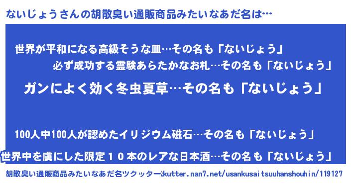 | 意味不明あだ名 | 『自称ないじょう』『ペロリンないじょう』 |