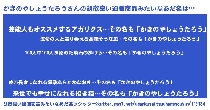 | 男性向けラノベタイトル風あだ名 | 『おまえをオタクにしてやるから、俺をかきのやしょうたろうにしてくれ! 』 |