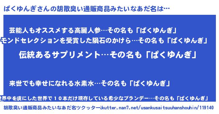 | ヘコむあだ名 | 『ぱく太郎』『ぱくゆんぎ(笑)』 |