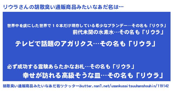 | 恥ずかしいあだ名 | 『リウラデラックス』『リウっちょ』 |