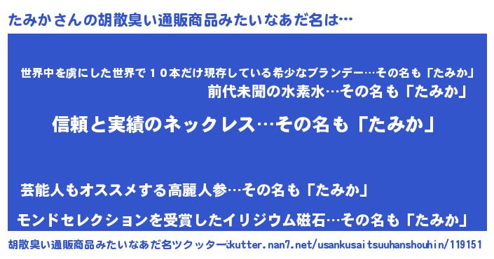 | 意味不明あだ名 | 『とにかく怪しいたみか』『自称たみか』 |