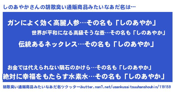 | ヘコむあだ名 | 『しのっぺ』『しのあやか(笑)』 |