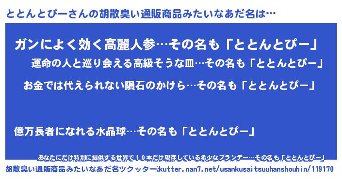 | ヒーロー風カッコイイあだ名 | 『愛の使者ととんとぴー』『仮面トトダー』 |