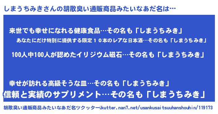 | ヒーロー風カッコイイあだ名 | 『正義の使者しまうちみき』 |