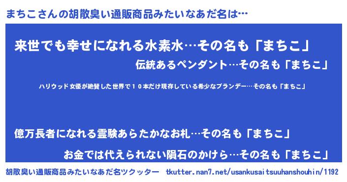 | 意味不明あだ名 | 『住所不定無職まちこ(86歳)』 |