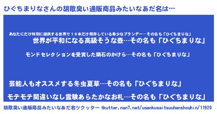 | ヒーロー風カッコイイあだ名 | 『天空の使者ひぐちまりな』 |