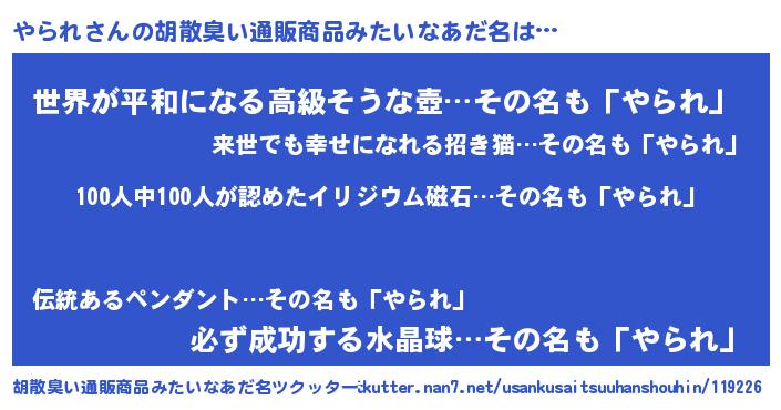 | ヒーロー風カッコイイあだ名 | 『正義の使者やられ』『スーパーヤラレ』 |