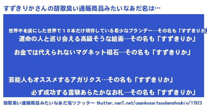| ヘコむあだ名 | 『すずにー』『なまこ酢』 |