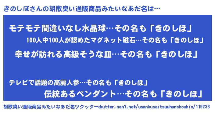 | 意味不明あだ名 | 『きのしほフォーエバー』『自称きのしほ』 |