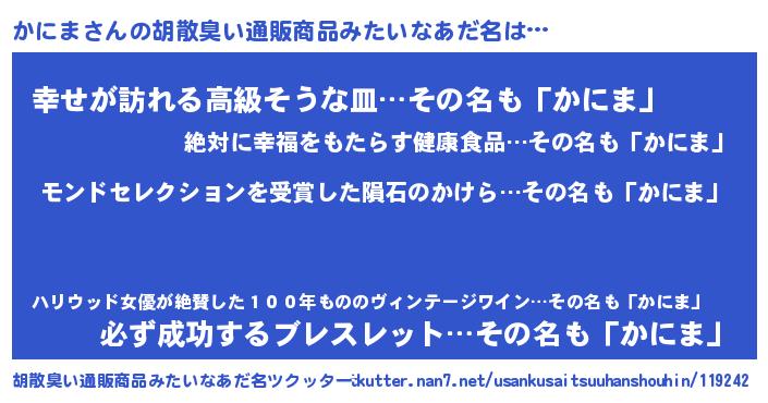 | ヒーロー風カッコイイあだ名 | 『天空の使者かにま』『スーパーカニマ』 |
