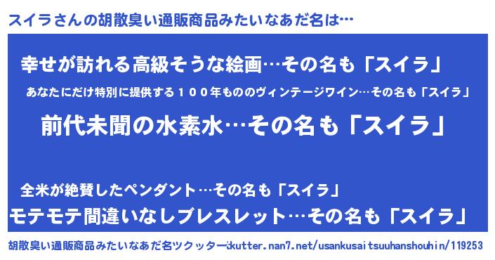 スイラさんの胡散臭い通販商品みたいなあだ名をツクッター!