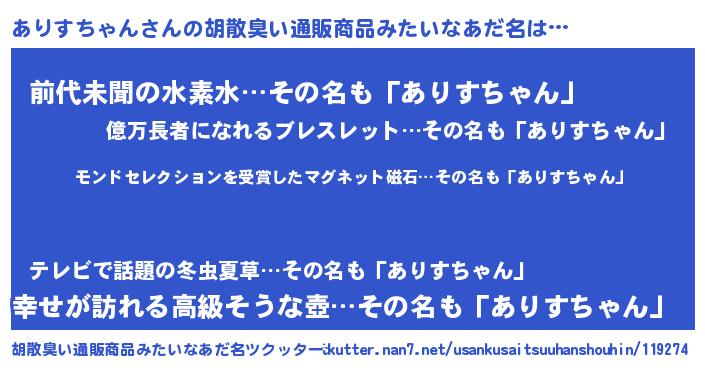 | ヒーロー風カッコイイあだ名 | 『天空の使者ありすちゃん』 |