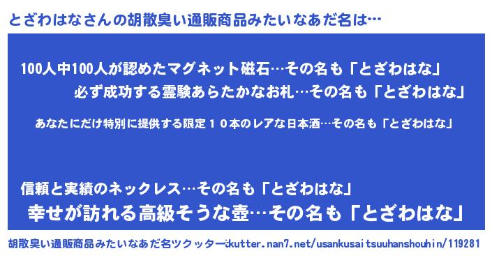 | 男性向けラノベタイトル風あだ名 | 『この素晴らしい世界にとざわはなを!』 |