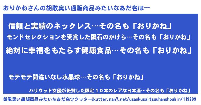 | ヘコむあだ名 | 『おりかね(笑)』『おりを』 |