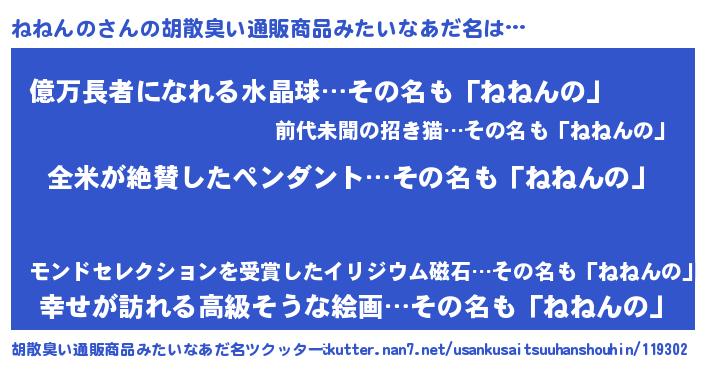 | 意味不明あだ名 | 『とにかく怪しいねねんの』 |
