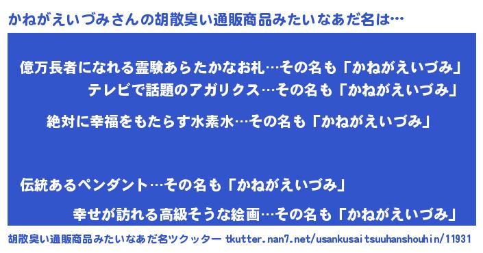 | ヘコむあだ名 | 『かねがえいづみ(遠い目)』『かねっふぃ~』 |
