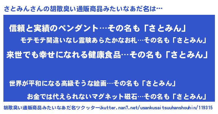 | ヘコむあだ名 | 『さとみん(爆)』『さとっちょ』 |