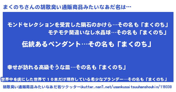 | ヒーロー風カッコイイあだ名 | 『銀牙騎士マク』『慈愛の使者まくのち』 |
