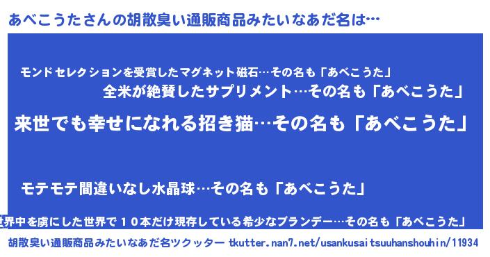 | 意味不明あだ名 | 『永久保存あべこうた』 |