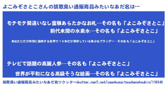 | 意味不明あだ名 | 『住所不定無職よこみぞさとこ(98歳)』 |