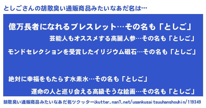 | ヘコむあだ名 | 『としもー』『レバニラ』『としお』 |