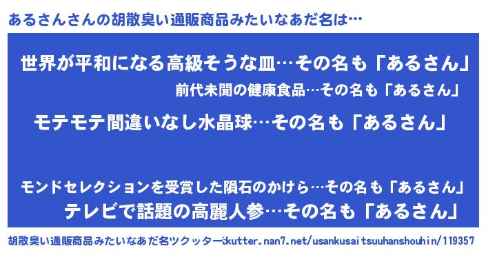 | ヘコむあだ名 | 『あるにゅー』『なまこ酢』『あるお』 |