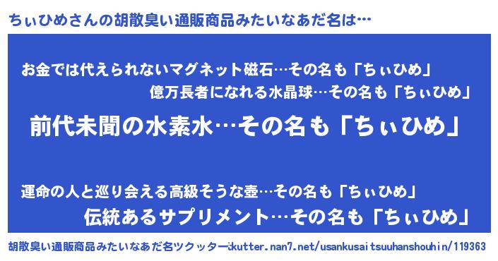 | ヒーロー風カッコイイあだ名 | 『ネオチィヒメ』『愛の使者ちぃひめ』 |