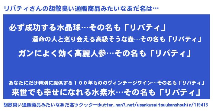 | 意味不明あだ名 | 『自称リバティ』『ペロリンリバティ』 |