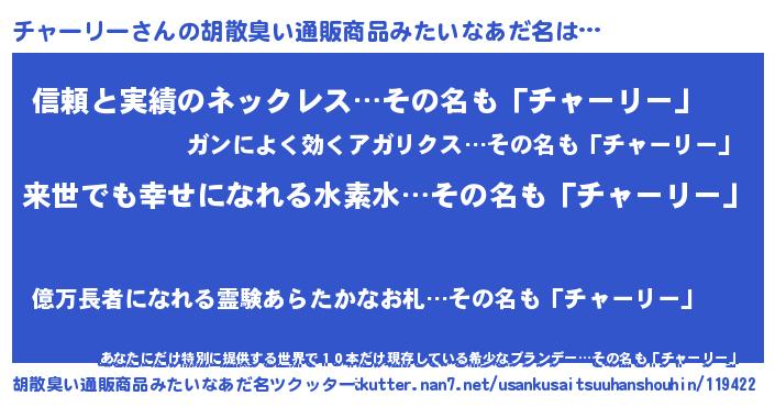 | ヘコむあだ名 | 『チャーリー(震え声)』『チャぷりん』 |