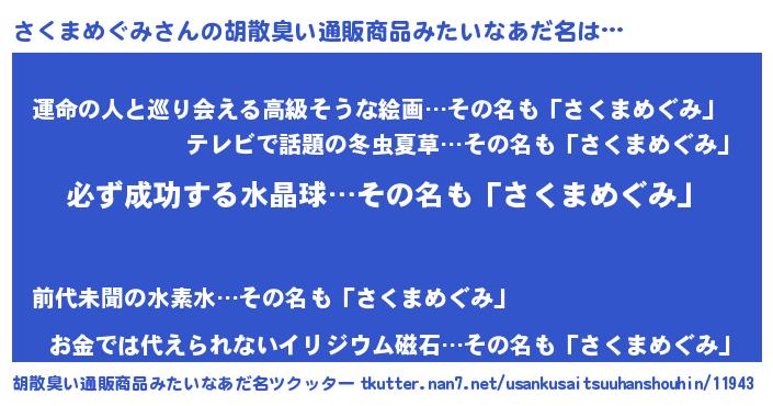 | ヘコむあだ名 | 『さくふぇ~』『なまこ酢』 |