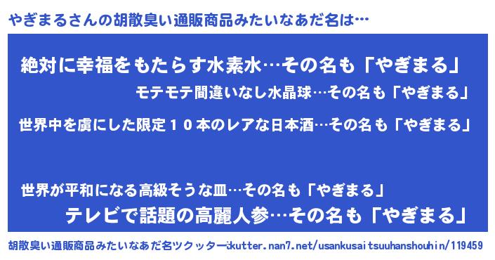| ヘコむあだ名 | 『やぎまる(爆)』『やぎにー』『豆乳』 |