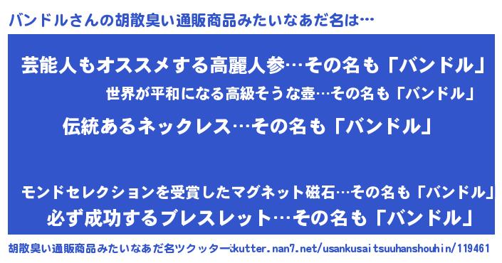 | 男性向けラノベタイトル風あだ名 | 『ダンジョンにバンドルを求めるのは間違っているだろうか』 |